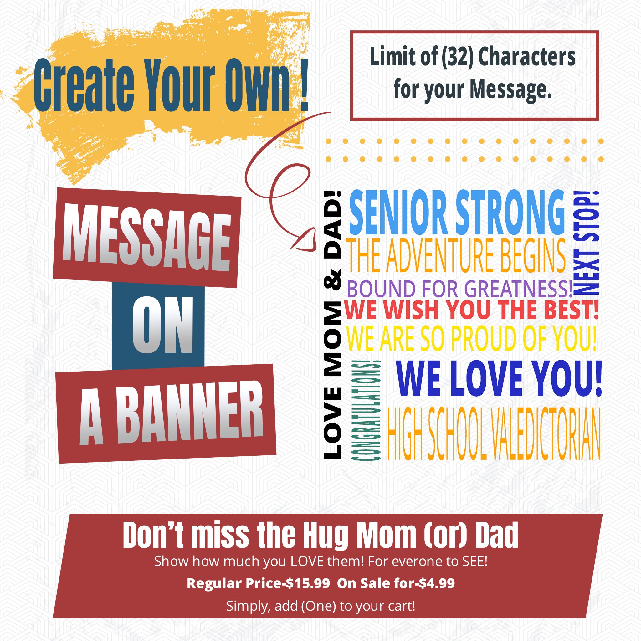Valentine's 2026 EPIC DEAL: Craft a premium GRADUATION BANNER starting at just $69. This is a limited time offer you don't want to miss! My Lowest Price of the year! Discount automatically applied at checkout.
